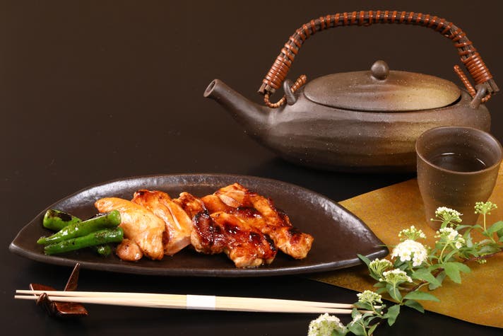 美濃焼の美しい甕に「たれ」を入れ、鶏を浸しながら焼くことで旨味がいっそう増すセットです