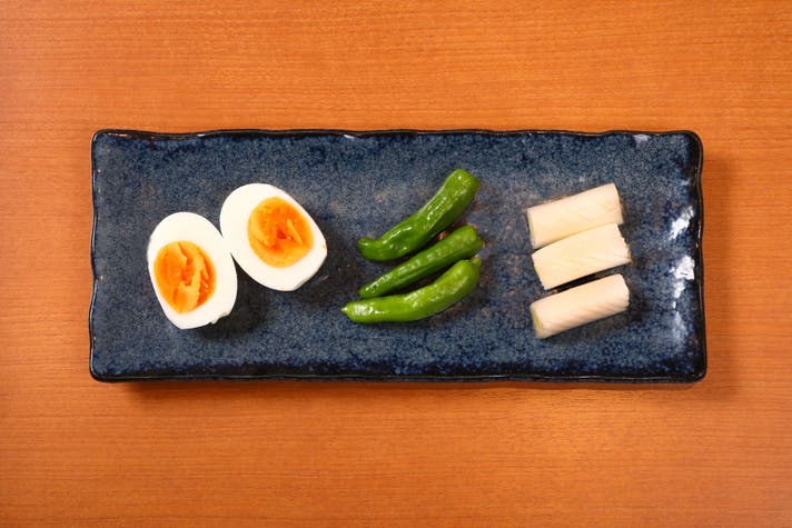 (たれを具材にかけるのではなく浸すのがコツなので深い容器にたれをいれておき、そこへ具材を浸してください)
