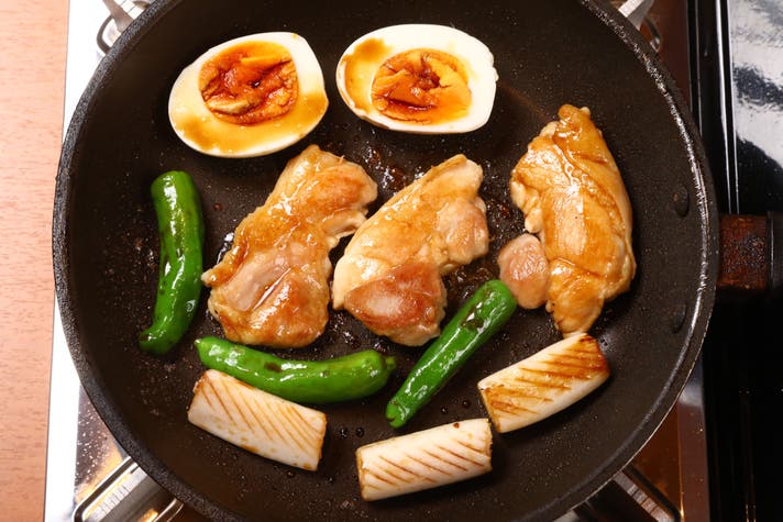 3 たれに浸した具材をフライパンで30秒ずつ両面焼く