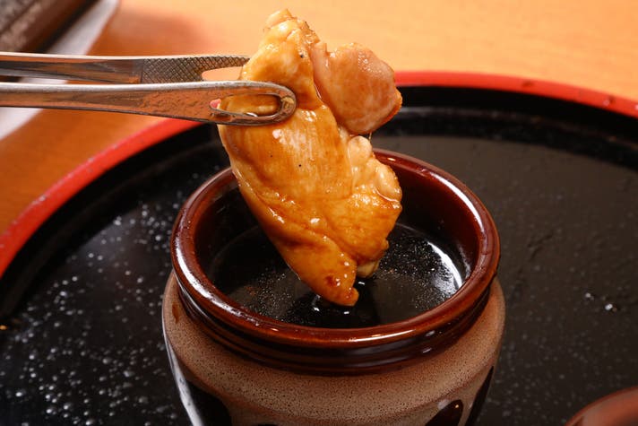 大甕にたっぷりと熟成たれを入れ、地鶏料理専門店のように鶏を浸しながら焼き本格的な鳥重の再現をお楽しみいただけます