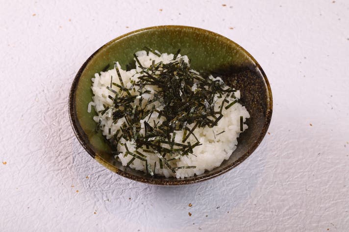 7 炊き立てのごはんの上に刻み海苔を載せる