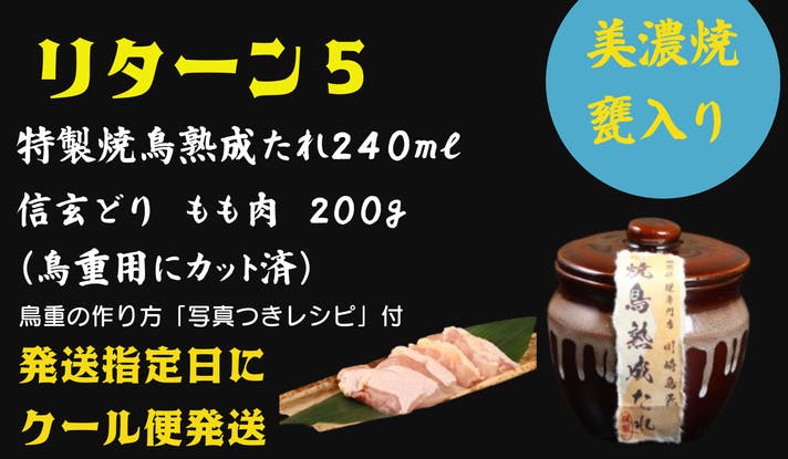 リターン5 【美濃焼・甕】熟成たれ240ml&信玄どり200g 限定10甕