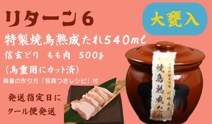 6 【特製たれ 540ml (大甕)+信玄どり500g】冷蔵発送