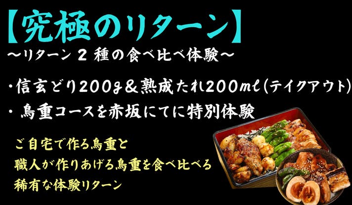 どちらのプロジェクトでも特製の熟成たれと新鮮な信玄どりを使用し、川崎鳥匠が極めた「鳥重」をご堪能いただけるプロジェクトです