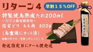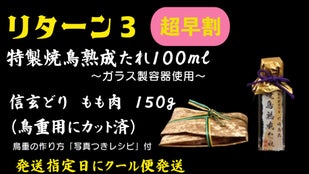 【早割15%OFF】リターン4鳥重2人前分信玄どり&熟成たれ200ml