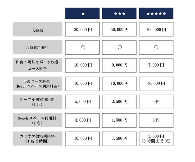 (3)Beachスペースの利用料金:1名3,000円(税サ別)