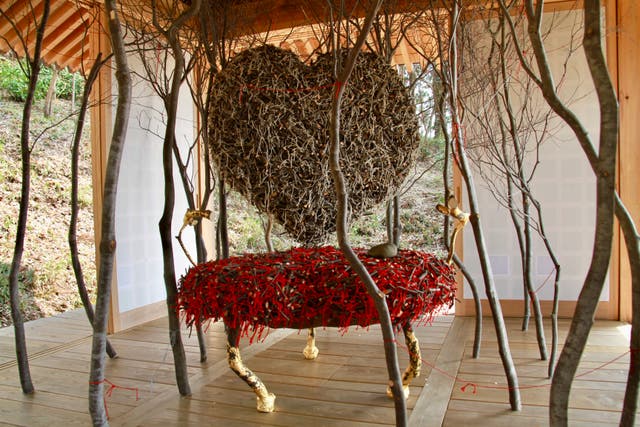 風の沢では、これまで里山ミュージアムとして多くの作家の方々によるアート展示を行い、訪れる人々を魅了してきました。その歴史を彩る貴重なアート作品は、現在も施設の随所でその輝きを放っています。