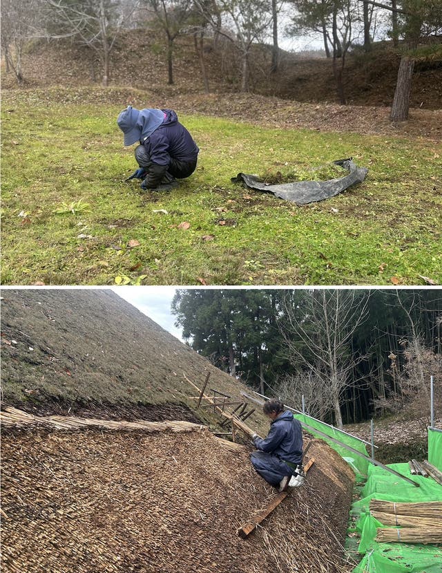 除草剤を使わず、生態系を守りながら広大な敷地の草抜きを行うこと。厳しい冬に備えた準備や、春を迎える為の枯れ木や落ち葉の片付け。春には小さな雑草が種をつける前に徹底的に抜き、夏には勢いよく成長する雑草を管理し、芝生を綺麗に整えます。茅葺き屋根を守るため、毎日囲炉裏の火を焚き、さらに差し茅を行うことで屋根を長持ちさせます。