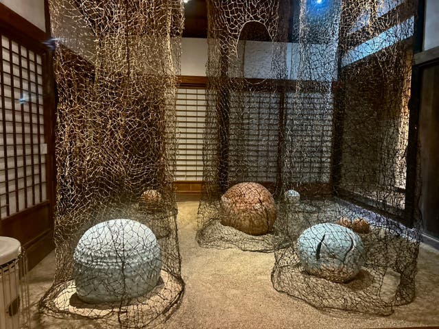 さらに、母屋と馬屋の茅葺き屋根は茅葺き職人・小林功さん、土壁は左官職人・今野等さんによって丹念に修復され、その美しさと伝統が息づいています。職人たちの技が支えるこの空間は、歴史的な建物とアートが一体となった唯一無二の場所です。
