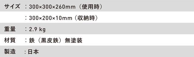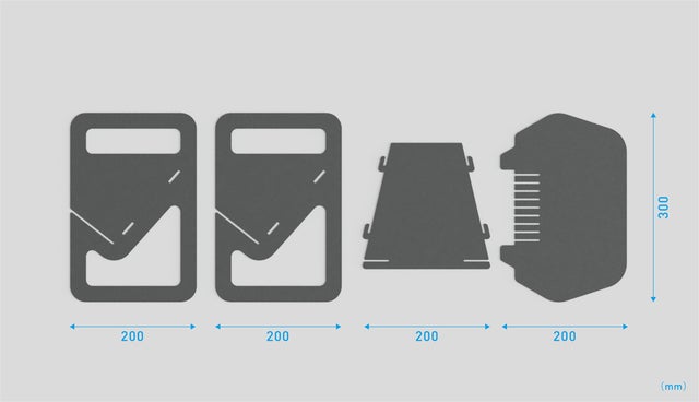 部品点数:ほぼA4サイズの300×200mmの4枚の鉄板(黒皮鉄)で構成。