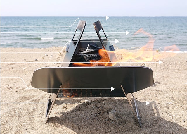 - 風や火おこしに困らない。焚火台自体に防風と急速燃焼機能を搭載。