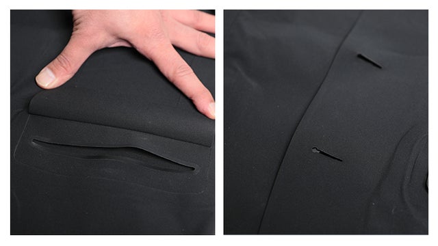 ジャケット内側やパンツの内側部分などの加工にシームテープを使用することにより、防水性や耐久性にも優れ、また余分なステッチを省きデザイン性にも拘った仕様になっております。