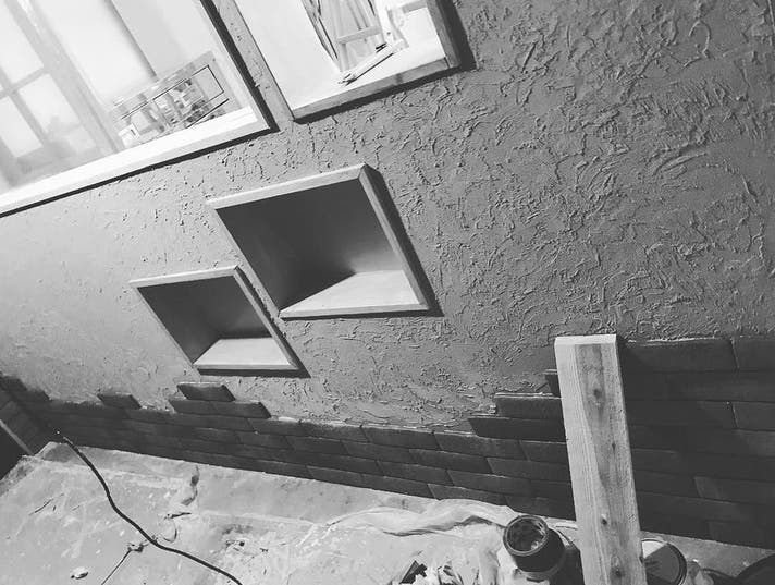 この大きな窓も某お店の廃材を利用しています。