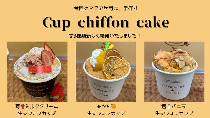 - 和歌山県産にこだわって、マクアケ用に3つの新作 手作り生カップシフォンケーキを作りました!