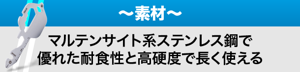 A:マルテンサイト系硬化ステンレス鋼です。高い耐久性と耐食性を誇る素材です。