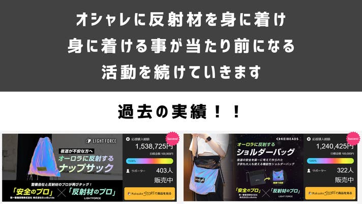 「Makuake(マクアケ)」は、実行者の想いを応援購入によって実現するアタラシイものやサービスのプラットフォームです。このページは、 ファッションカテゴリの 「デザイン性と安全性を両立!シルバー反射材のショルダーバッグ登場!」プロジェクト詳細ページです。