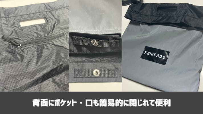 背面にポケット・口も簡易的に閉じれて便利