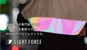 福井県内の企業、株式会社 丸仁の特許技術オーロラリフレクター(虹色反射光を持つ再帰性反射材)LIGHT FORCE(R)を使用し、車のヘッドライトなどによって57m先でも明るく光って見え、夜間のドライバーから見た視認性を向上させます。