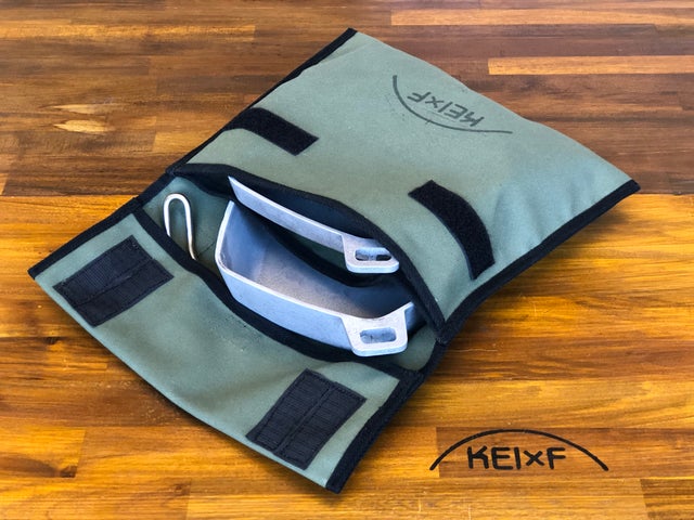 アルミ製スキレット深型・浅型、取手、サイドポットを収納できる、帆布製のバッグです。