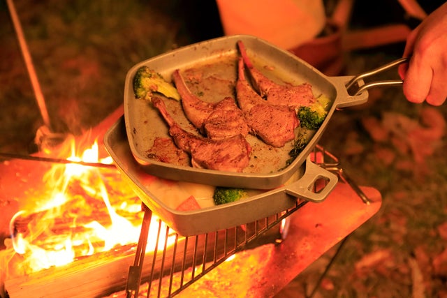 アルミ製スキレットの重量は、鉄のおよそ3分の1。調理やお手入れ、持ち運びの負担を軽減しながら、キャンプのパートナーとしての存在感は存分に発揮。ソロ、グループ、ファミリーと、どんなスタイルのキャンプでも活躍します。