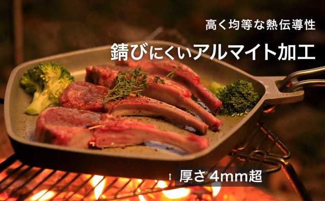 錆びに強いアルミ製。シーズニングなしでお手入れ簡単