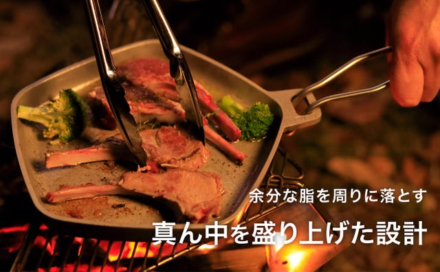 またスキレットは真ん中を盛り上げて設計しており、肉から出た余分な脂は周りに落ちる構造に。