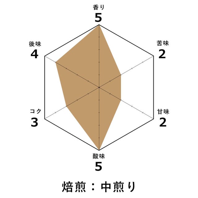 酸味が少なく甘みの強いコーヒー。淹れるお湯の温度により、風味が変化します。83度ではチョコレートのような甘味と熟成させたワインのようなまろやかでエレガントな酸味が感じられます。90度ではナッツのような香ばしい香りと心地よいほのかな苦みも。砂糖を入れなくても感じられる十分な甘みが印象的。