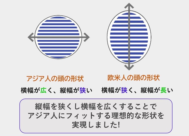 - 重量わずか212g!日本人の頭にフィットするアジアン形状