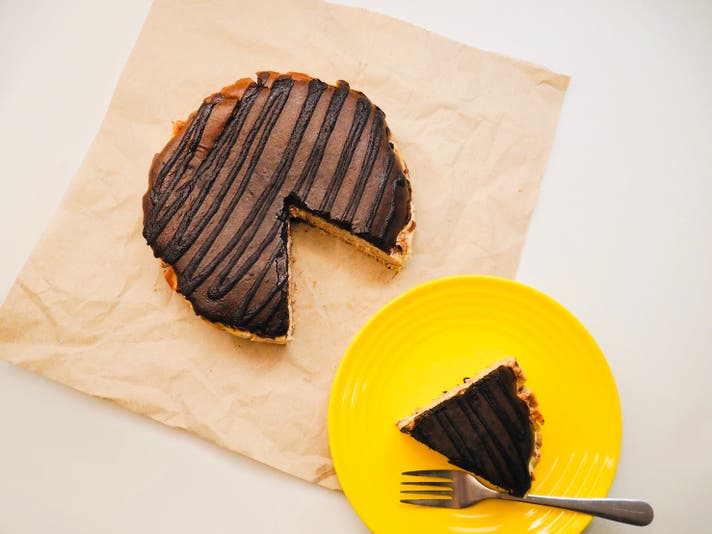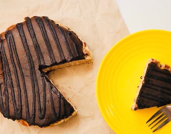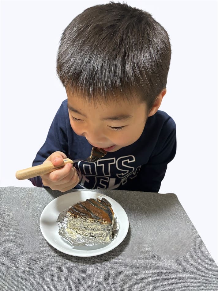 チョコで深みが出たうえにバスクチーズケーキの目玉である焦し部分に新たなアクセントがつきクセになります。
