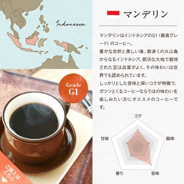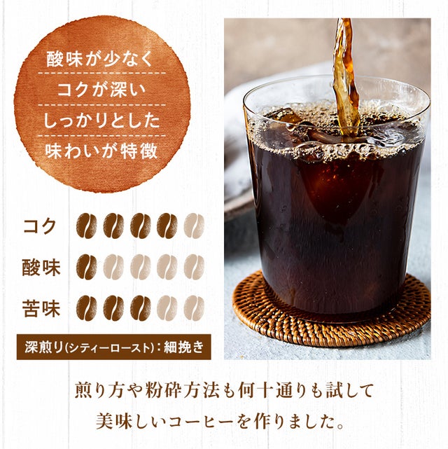 このコーヒーの特徴は適度なコクと苦味で香りが高くバランスの取れた1杯をお楽しみいただけます。