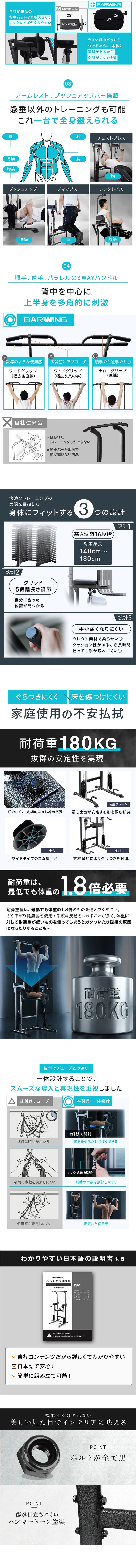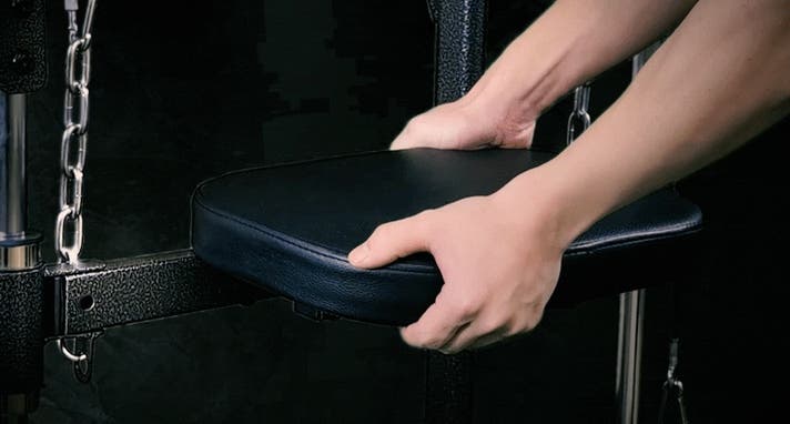 - アシストパッドは背中パッドにも変形!レッグレイズ、ディップスなど、これ一台で様々なトレーニング