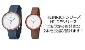 ・販売予定価格¥20,520(税込)~¥21,600(税込)のHENRICHシリーズ、HILDEシリーズからお好きな時計2本で34,560円(税込)でご購入いただけます。