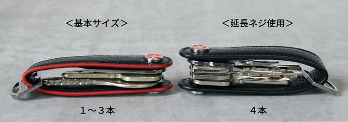 A.一般的な形状の鍵でしたら、ミニマムな状態で1~3本まで収納できます。付属の延長ネジを使うことで4本まで収納可能になります。