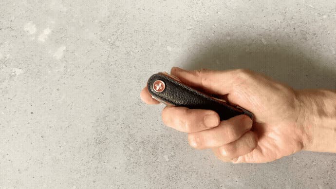 廃棄されるはずだった端切れを活かすという発想に、機能性とデザイン性を掛け合わせて生まれたのが、keycabinsレザータイプです。