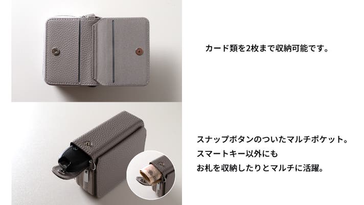 - スマートキー3個、カード類2枚を収納できるスマートキーケース