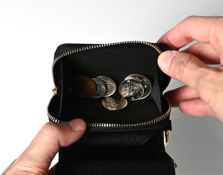 しっかり広がる設計だから、スマートキーだけでなく小銭もすっきり収納できます。幅9cm、マチ5cmのゆとりある設計で、硬貨もたっぷり収納可能。