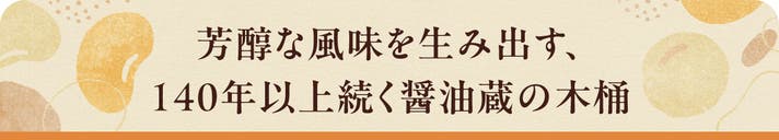 蔵や木桶には目に見えない微生物が棲みつき、時間をかけて醤油に深みを与えています。