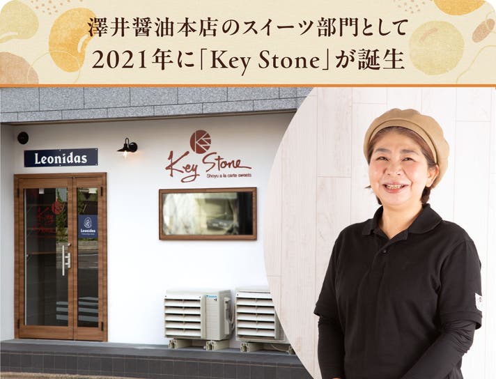 醤油の幅広い可能性をもっとたくさんの方に知っていただきたいという長年の思いから、澤井醤油のスイーツ部門として2021年10月に醤油スイーツ専門店「Key Stone」というお店を立ち上げました。