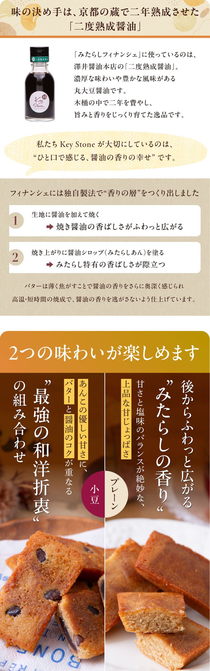 「醤油をもっと自由に、もっと楽しく」を合言葉に醤油スイーツを通じ、醤油の幅広い可能性をもっとたくさんの方に知っていただきたいという思いで、2021年に京都で「Key Stone」が誕生しました。