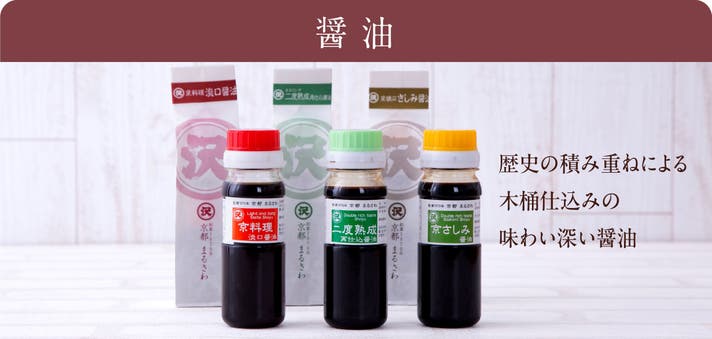 ・澤井醤油3本セット…二度熟成醤油(75ml) 1本、京淡口醤油(75ml) 1本、さしみ醤油(75ml) 1本
