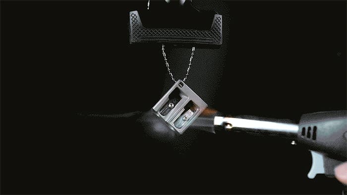 軽量かつ高強度で、錆びにくく、経年劣化にも強いチタン合金。航空宇宙分野にも採用される素材をCNCで精密に削り出しました。