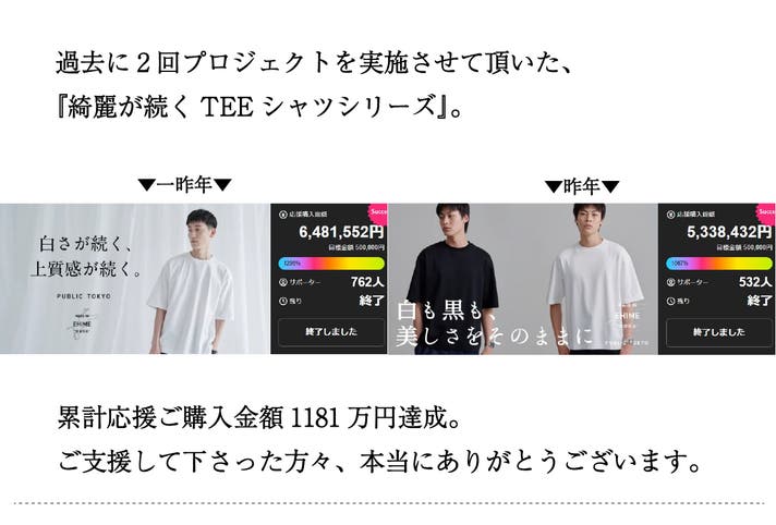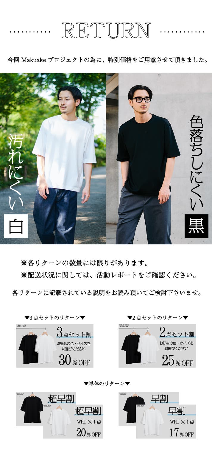 「Makuake(マクアケ)」は、実行者の想いを応援購入によって実現するアタラシイものやサービスのプラットフォームです。このページは、 ファッションカテゴリの 「汚れにくく色落ちしにくい。冷感も付与した日本製Tシャツ|PUBLIC TOKYO」プロジェクト詳細ページです。