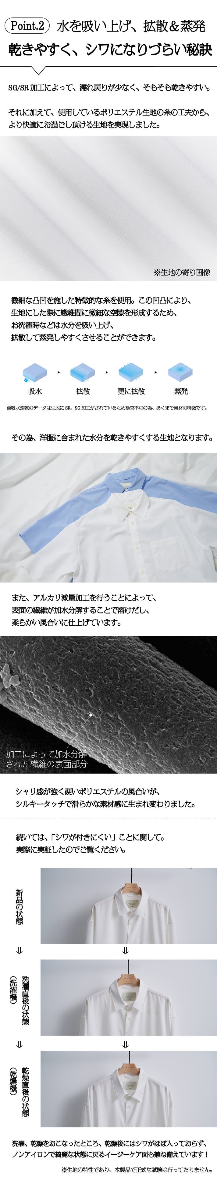 - 【乾きやすく&シワになりにくい】吸水⇒拡散⇒乾燥がしやすい構造に&アイロンいらずのイージーケア