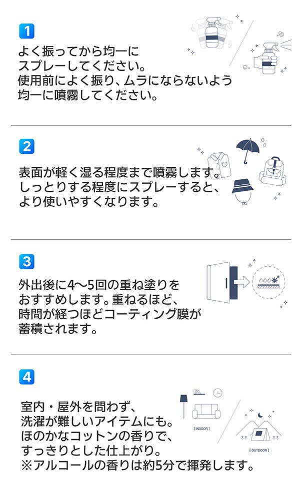 - フッ素不使用・ガスフリー設計で、毎日使いやすい撥水スプレーです。
