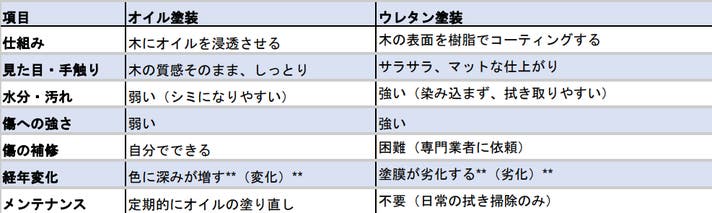 A.木の風合いやお手入れ方法に違いがございます。お客様のライフスタイルやお好みに合わせてお選びください。