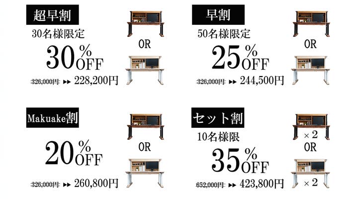 このMakuakeを通じて「木動デスク」を応援してくださる皆様へ、感謝を込めて特別なリターンをご用意しました。期間限定の特典となりますので、ぜひこの機会にご検討ください。