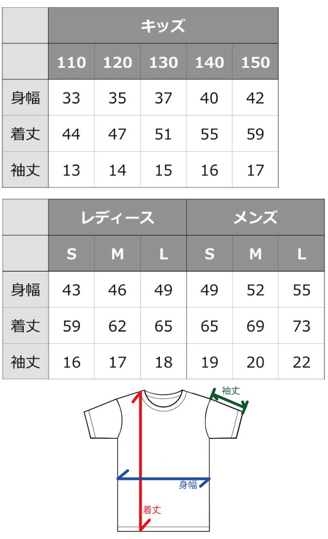 *Tシャツはキッズ、レディース、メンズサイズでご用意しております。