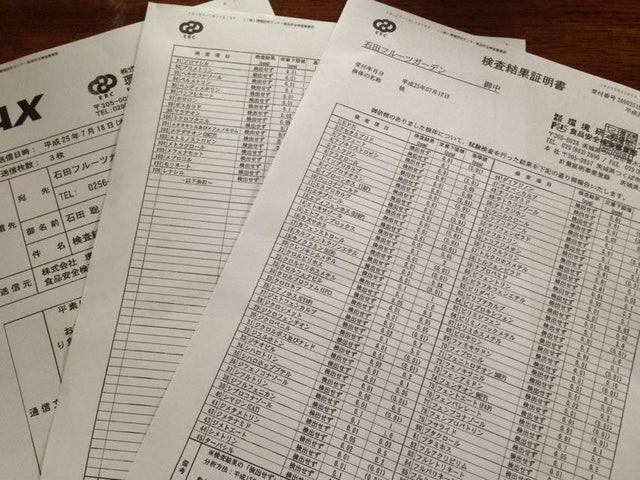 そのため農薬の残留がないか確認するために定期的に専門機関による108成分の残留農薬検査を実施しております。