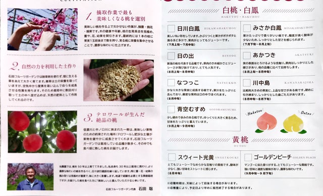 商品には簡単なパンフレットをお入れいたします。普通桃と黄桃は選べますが、