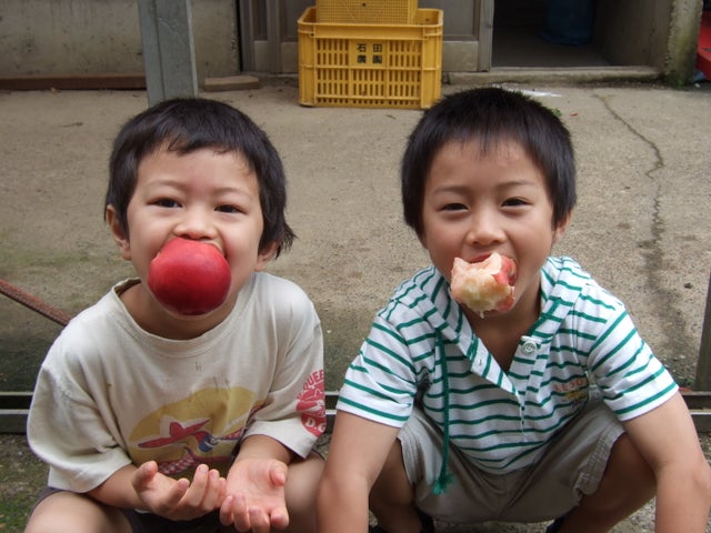 皆様にお届けすると同時に私たちの子供も毎日のように桃を食べます。